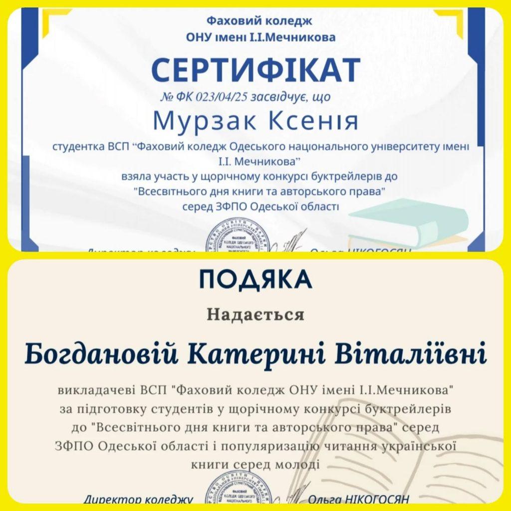 Перший курс: Старченко Аліна (1 місце “Ігровий буктрейлер” та 1 місце “Лідери переглядів ютуб”), Кара Валерія (3 місце “Ігровий буктрейлер”), Міхєєва Маргарита (3 місце “Презентаційний буктрейлер”).
