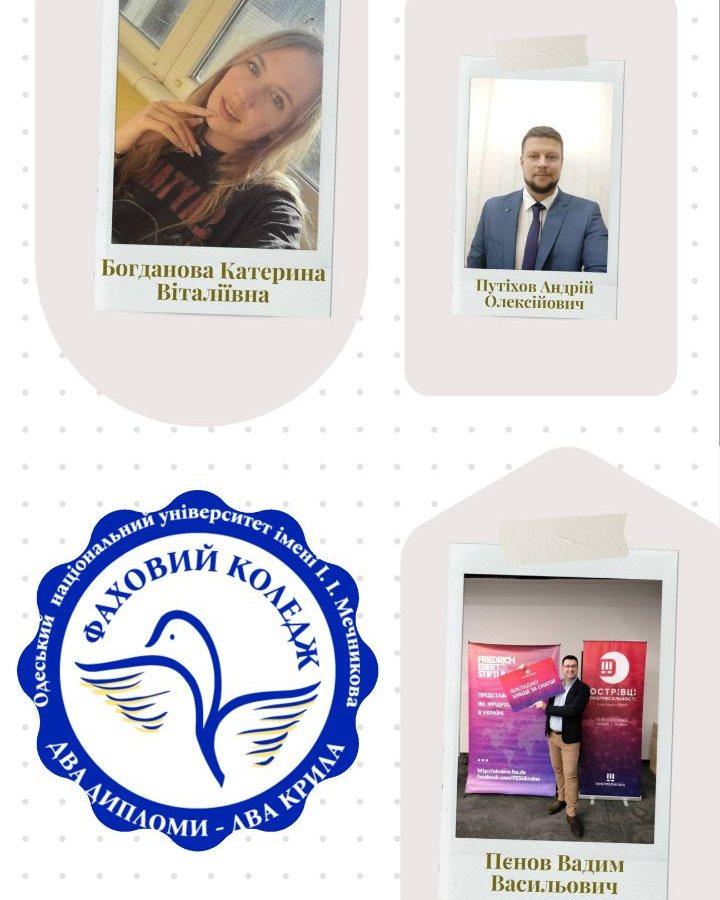 Здобувачі освіти Фахового коледжу ОНУ імені І.І. Мечникова взяли участь у 13 з 18 олімпіад, продемонстрували високий рівень знань та одержали призові місця: