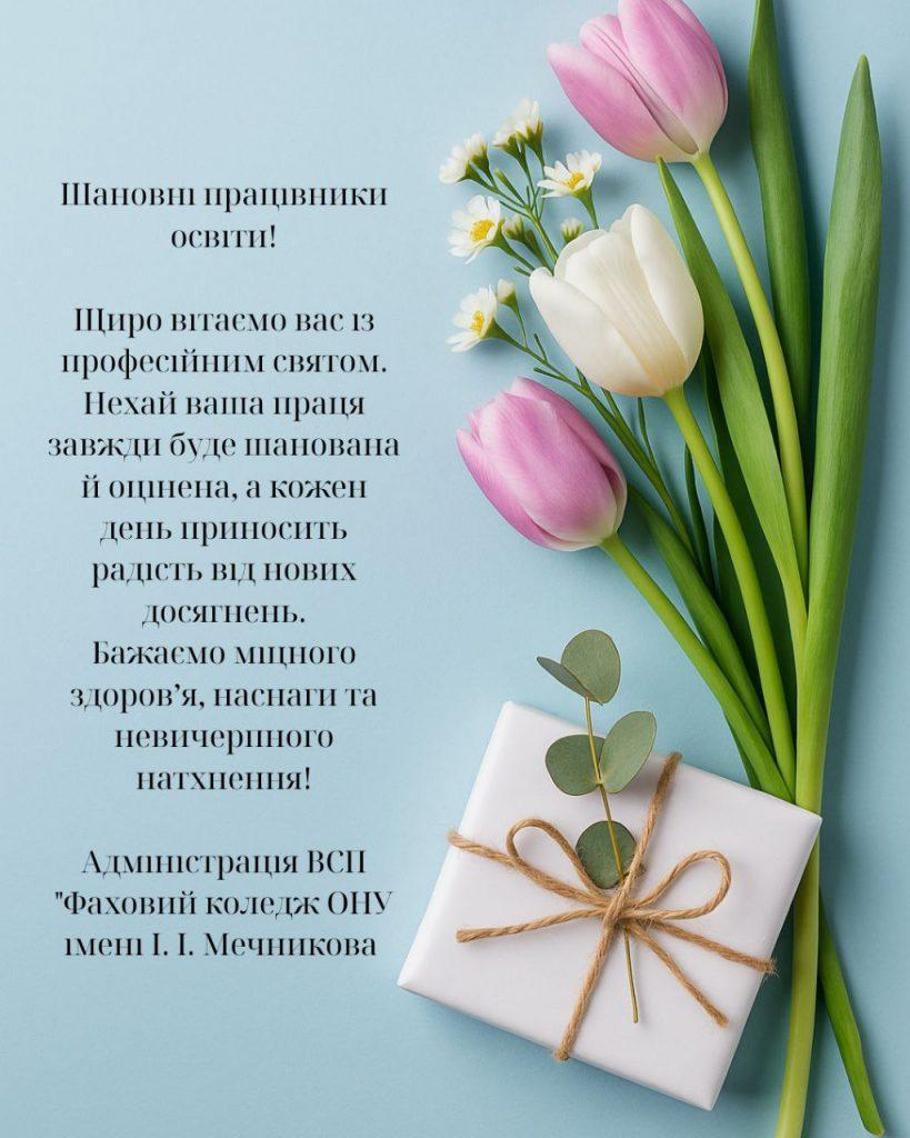 Цього тижня педагогічні працівники Фахового коледжу отримували привітання від студентів та їхніх батьків з професійним святом. Всіх нас об’єднує мета – допомагати молоді пізнати світ, здобути необхідні знання, а найголовніше – проявити таланти, набути моральні й духовні цінності та обрати вірний життєвий шлях. Глибока повага Вам, шановні колеги, за високий професіоналізм, невтомний творчий пошук та прагнення виростити особистості, соціально активних громадян та справжніх патріотів України.